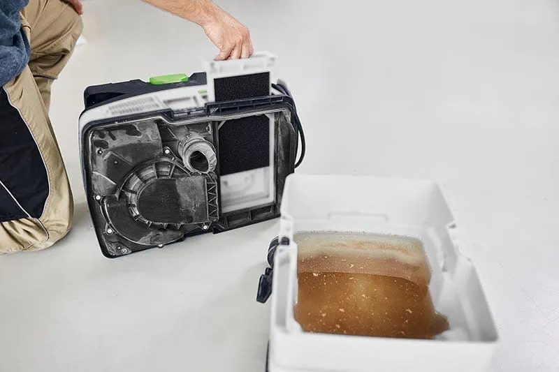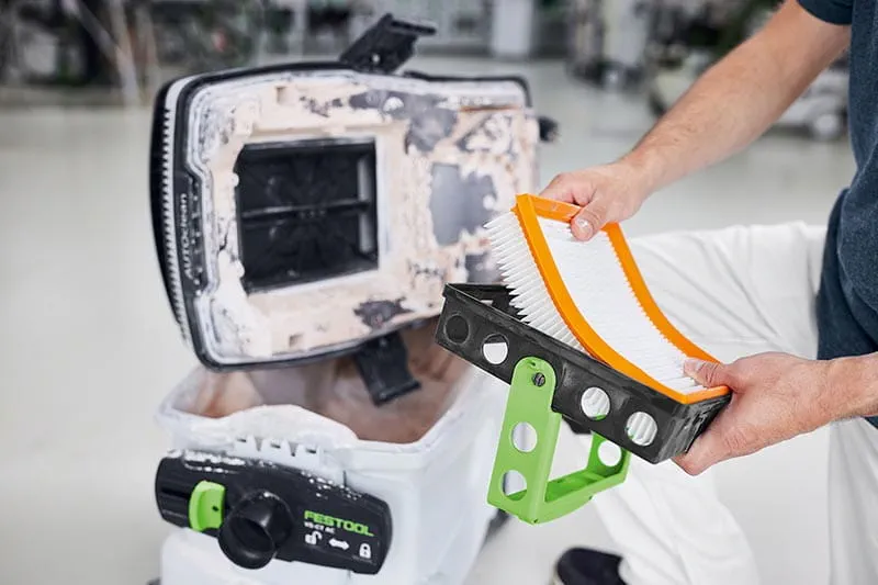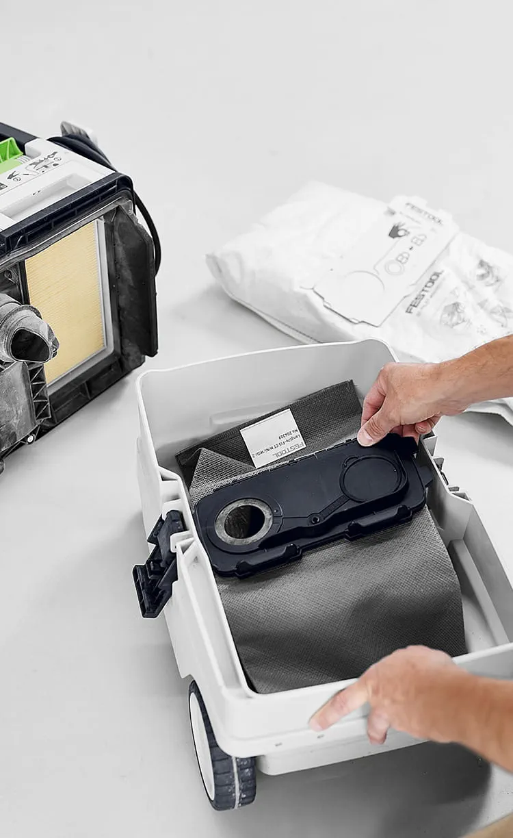 Coarse particles or very fine dust, wood, cement or asbestos: No matter what material you're machining, our filters and filter bags are perfectly tailored to our extractors. They make it possible to filter up to 99.995% of the dust generated in sanding, sawing, routing or drilling applications. They are robust, easy to change and can be sealed for disposal – for perfectly clean results. Your health will thank you.