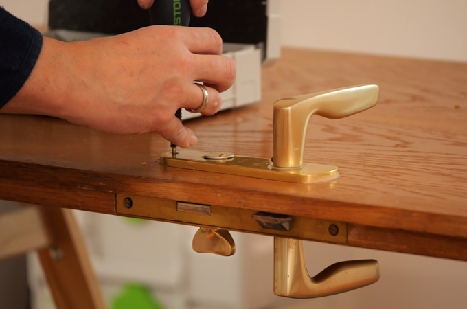 After drying, the fittings are reattached to the door. The ratchet set can be used again for this. The door is then finished and you can move on to the next project.