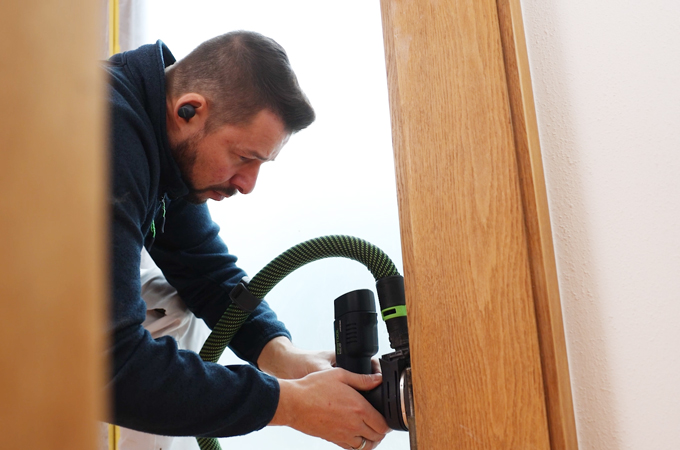 Final sanding of door leaf and frame