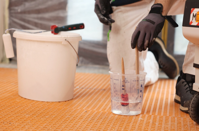 Before painting, the surfaces are cleaned again with a dust-binding cloth. In places that are difficult to access, mask off with gold tape to protect the wall, for example. The painting tools and the undercoat to be used are prepared and can be placed on the CTMC Midi at a comfortable working height. we recommend covering the Dust extraction unit with a newspaper for protection and storing the tools and paint in a bucket to avoid unnecessary contamination.