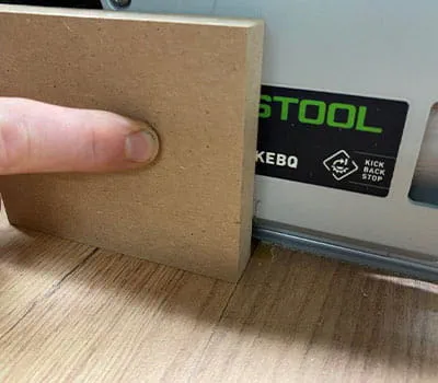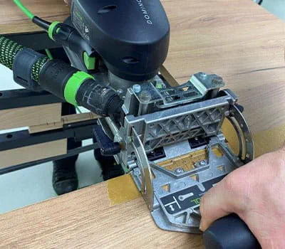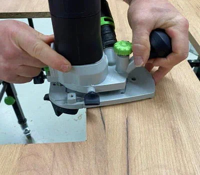 In our case, the 12-tooth router is perfectly suited to the joining machine. Alternatively, you can, of course, also use a router for this, in order to route the holes for the hinges exactly.