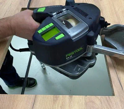 We carefully feed in the jigsaw blade and complete the cut out at all corners. Then the edges and the edge bander are prepared. Please also pay attention to the operating instructions here. However, this process is only necessary if, for instance, a press board is being used as backing material. For multiplex plates, the next few steps can be skipped (continue with step 15).