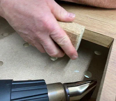 If no edge bander is available, or the cut out for it is too small, pressed edges can also be used.