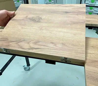- Table/plate e.g. veneered chipboard (additional edging material/has to be edged)
