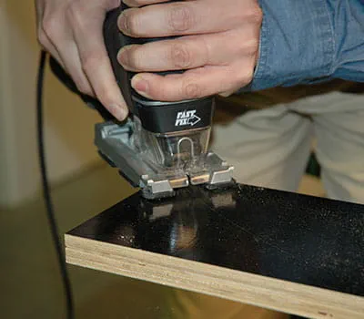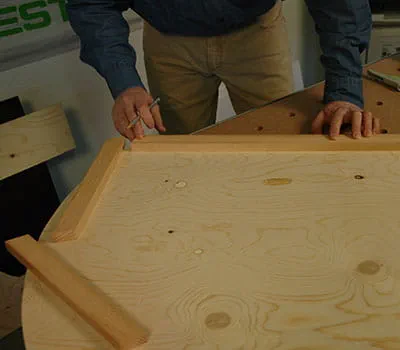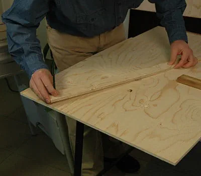 Cut the plywood sheets to size according to the specifications in the material list. If you would like to cut the individual panels yourself, it is easiest if you lay battens onto the ground as a base and use a plunge-cut saw with guide rail to do the cutting. We recommend constructing both side walls and the base panel to start.