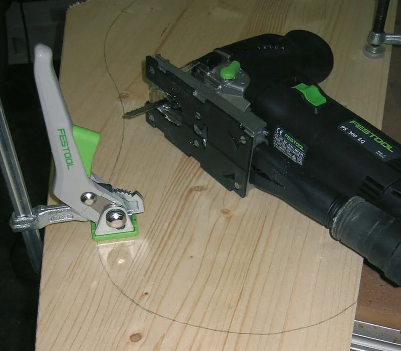 Mark out the curve for the outer edges of the base plate, including duplicate, and the side pieces. Use a portable circular saw with guide rail or a jigsaw to cut out the straight edges.