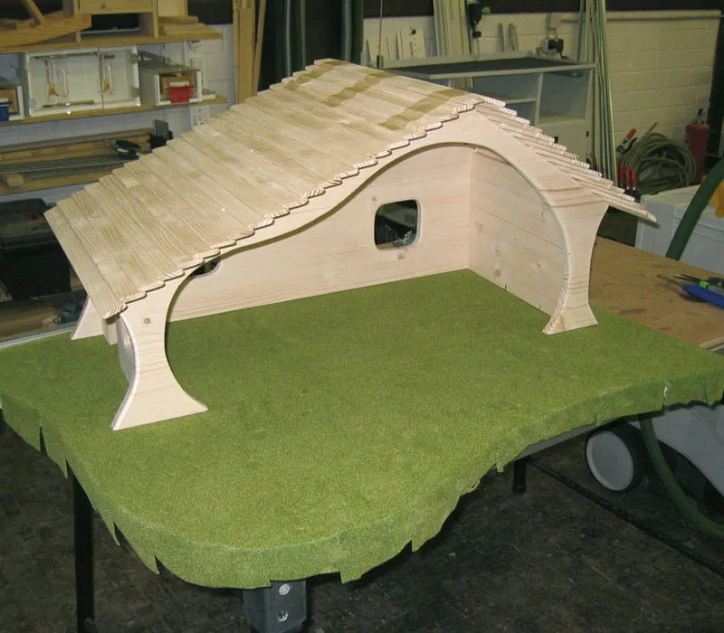While the adhesive dries, cut the roof slats for the roof (sold by the metre in the timber trade) to the correct lengths and break the edges.