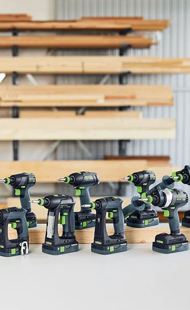 Festool cordless screwdrivers fit perfectly into the system. Our system accessories such as the quick-change system, Angle attachment, Eccentric attachment, Depth stop, Battery packs, Chargers, Bits and Drill bits for a wide range of applications make your work with a Festool cordless screwdriver even more efficient.